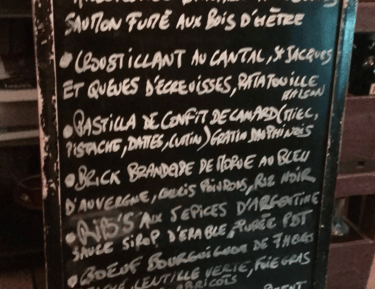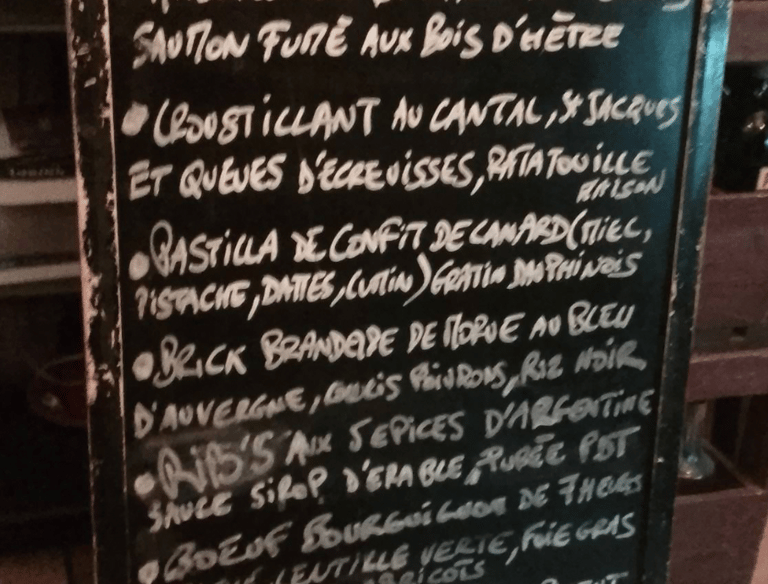Menus du jour affichés sur ardoises murales.